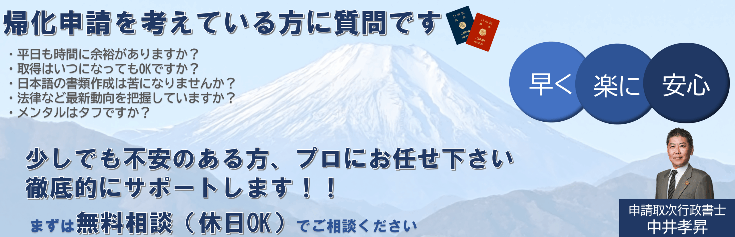 日本国籍取得の申請についてご相談ください。