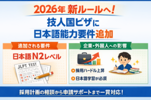 ― 外国人採用とビザ申請に大きな影響が予想されます政府は2026年4月、在留資格「技術・人文知識・国際業務(技人国)」について、日本語を使用する業務に就く外国人に対し、日本語能力の証明を求める方向で調整していると報じられ […]